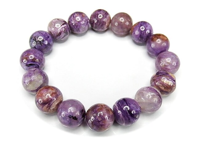 ●天然の柄有り 高貴な紫色ベース 人気天然石 ●材質 AAAチャロアイト約12mm玉 不思議な油絵模様の石になります。 石の内容部詳細は下記石言葉をご参照ください。 ●内径サイズ約157mm (レディースL-サイズ) オペロンゴム使用、伸縮性あり サイズ変更などはご購入前にご質問ください ●ギフト用巾着付、基本は営業日当日か翌営業日発送 ●石言葉: ☆ チャロアイト: 3大ヒーリングストーンの一つ (チャロアイト・スギライト・ラリマー) 浄化にとても優れた石で、持つ人を純粋で優しい気持ちにし、 心身の働きを正常にする力があるといわれます。 霊性を高めエネルギーを浄化し心を開いて感情、精神、肉体のバランスを保つことを促してくれます。 ☆ 内容物について エリジン(黒い部分)、マイクロクリン(またはカリ長石:透明〜白い部分)、ティナクサイト(淡橙部分)などの鉱物が、 チャロアイトとマーブル状に混ざり合って織り成されています。 | |