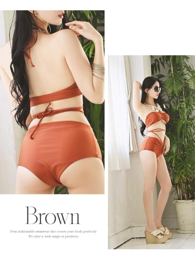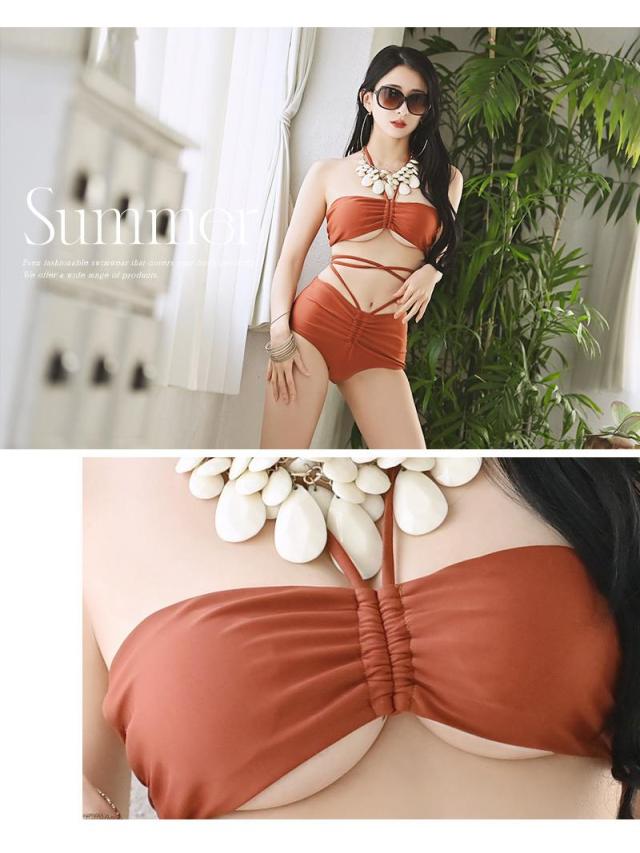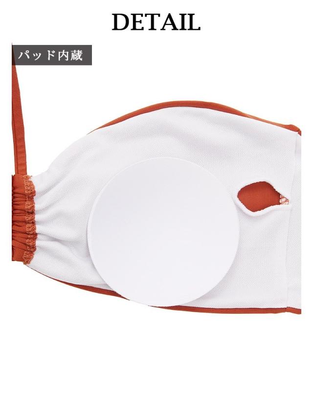 ☆明るく元気なイメージのオレンジと大人っぽいイメージのブラウンの良いととこ取りカラーのテラコッタカラーの水着はヘルシーな色気を演出する大人可愛いレディースビキニセットです♪