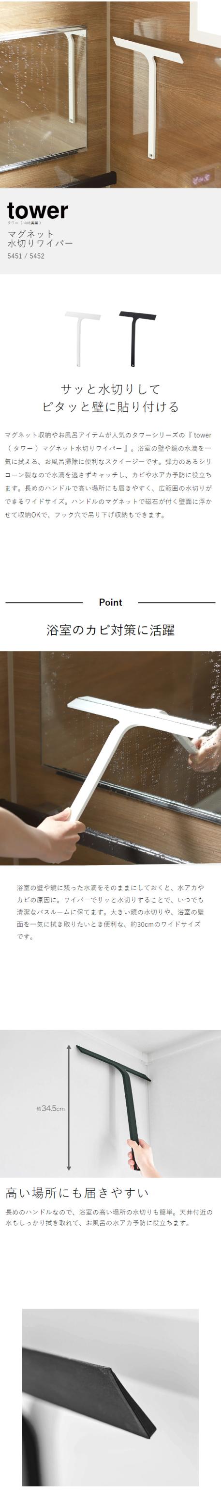 [ マグネット水切りワイパー タワー ]山崎実業 tower 水切りワイパー マグネット お風呂 浴室 スキージー 風呂 窓 鏡 ミラー 掃除 ワイパー ハンディーワイパー ハンドワイパー 引っ掛け フック 磁石 窓掃除 お風呂掃除 ガラス掃除 窓ふき 窓拭き yamazaki 5451 5452