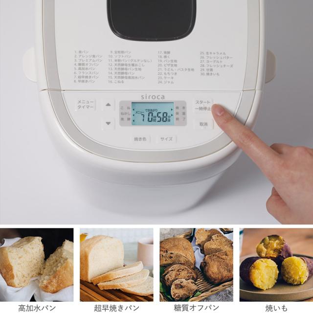 30種類の豊富なメニューと、わずか58分で焼けるスピードが魅力。毎日がたのしくておいしくなる、シロカのホームベーカリーです。しっとりもちもちの高加水パンや、リッチな味わいのブリオッシュ、さらにジャムやチーズまで、幅広いメニューを手軽にお楽しみいただけます。