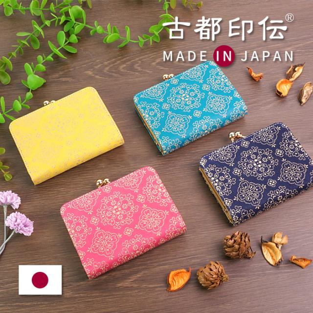 鮮やかな色をした鹿革にエレガントな表現を施した『古都印伝』のレースフラワーシリーズ。