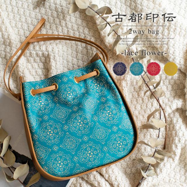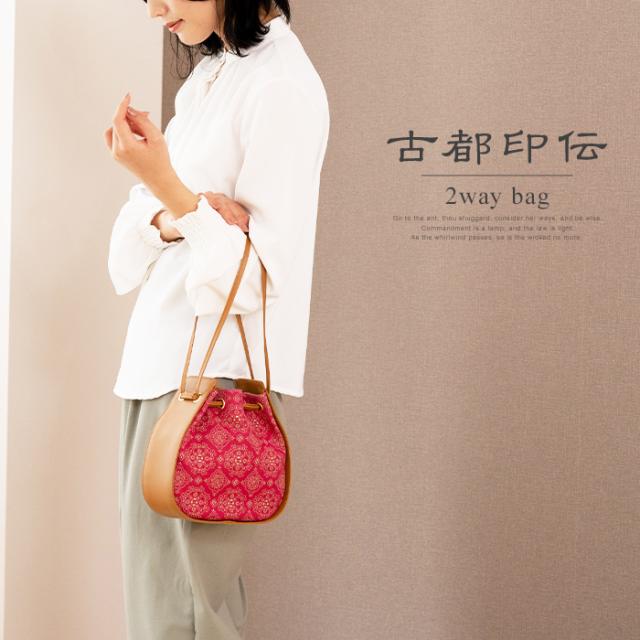 巾着バッグ ハンドバッグ レディース 本革 日本製 古都印伝 母の日 ラッピング 敬老の日 ギフト プレゼント クリスマス