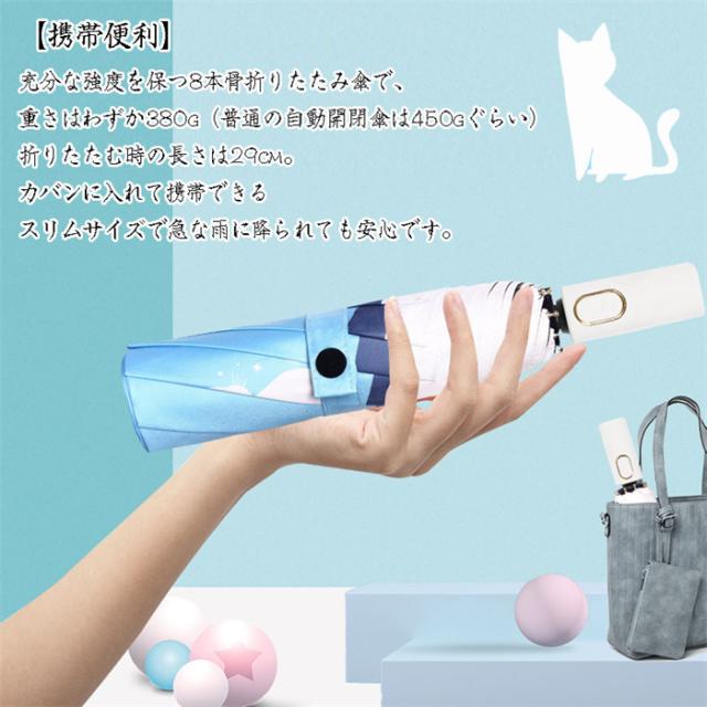 母の日 日傘 折りたたみ傘 猫 猫柄 傘 雨傘 折りたたみ かわいい ねこ ネコ 自動開閉 大きめ 折り畳み傘 かわいい バンブーハンドル 日傘 おしゃれ ワンタッチ自動開閉 傘 頑丈な8本骨 撥水加工 耐強風 晴雨兼用 男女兼用