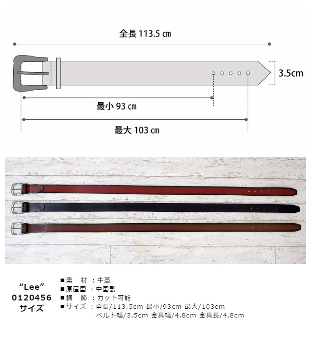 【メンズ ベルト】Lee(リー) ベルト グラデーション 3色 ベルト幅3.5cm 全長113cm 長さカット可能【0120455】ベルト 本革 カジュアル ブランド バックル 革 バッグ・小物・ブランド雑貨 ベルト 男性用 レッド ブラウン ネイビー プレゼント