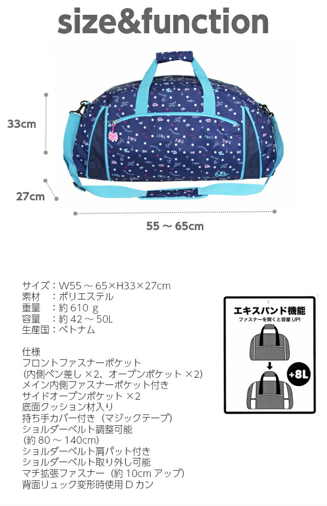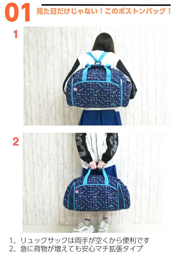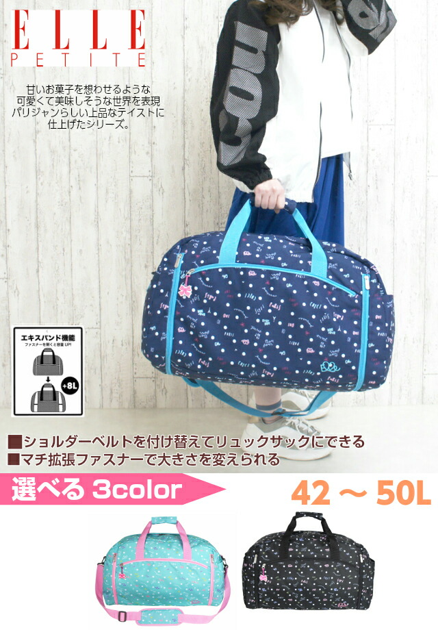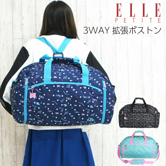 修学旅行 バッグ 女子 ELLE PETITE(エル プチ)パルフェ 3way ボストン 42〜50L el306 ボストンバッグ リュックボストン 2泊 林間学校 旅行 宿泊学習 小学生 高学年 中学生 女の子 かわいい 黒 紺 緑 マカロン 大人可愛い おしゃれ 人気 拡張 広がる 大容量 ボストンリュック