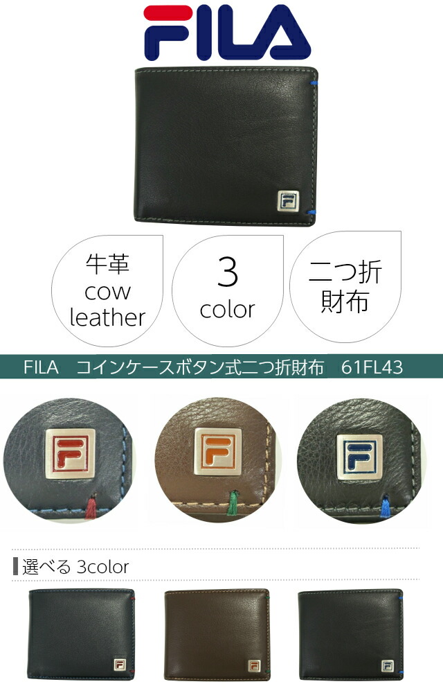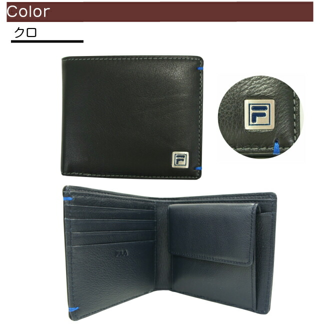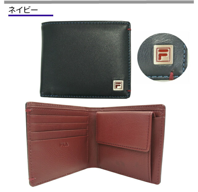 【送料無料】【ラッピング袋無料】FILA フィラ 二つ折り財布【61fl43】折りたたみ メンズ 2つ折り 財布 ブランド 紳士用 男性用 牛革 革 メンズ財布 人気 通販 小銭入れあり ブラック ブラウン ネイビー 黒 茶色 紺 チョコプレゼント ギフト クリスマス 父の日