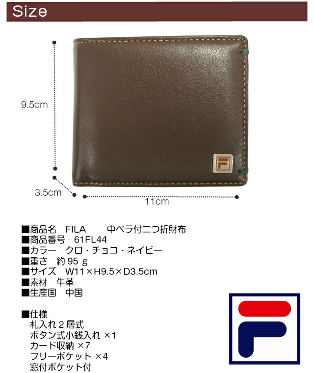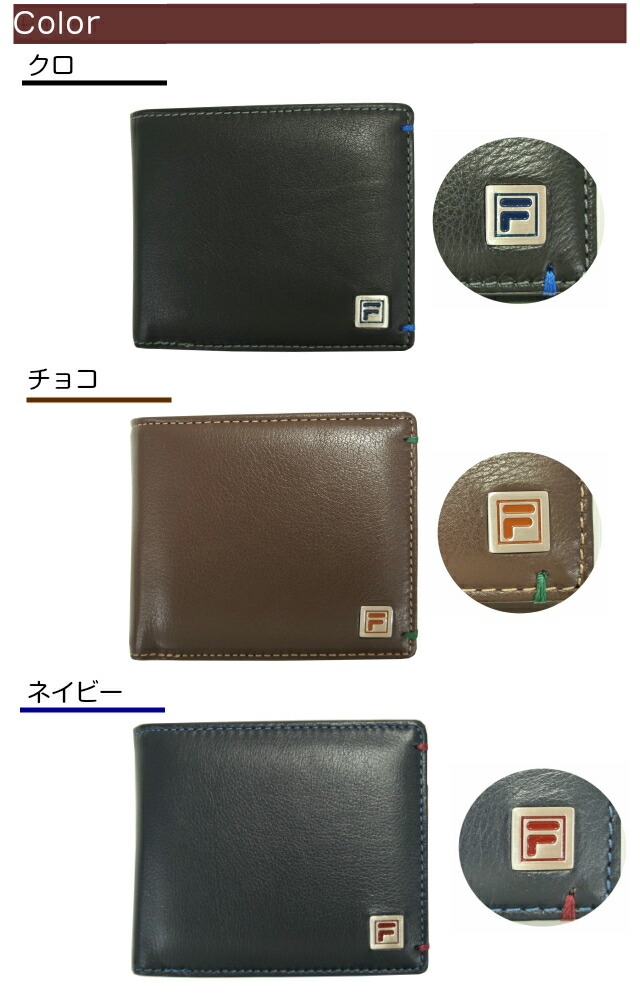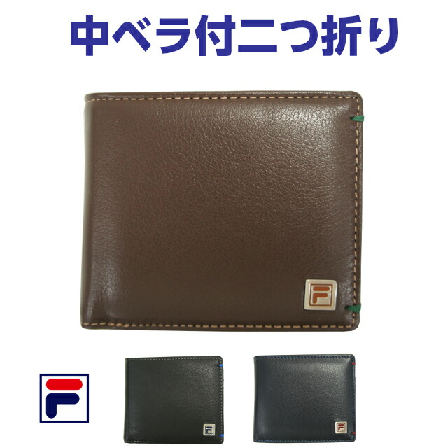 【送料無料】【ラッピング袋無料】FILA フィラ 二つ折り財布 定期入れ パスケース付き【61fl44】折りたたみ メンズ 2つ折り 財布 ブランド 紳士用 男性用 牛革 革 人気 小銭入れあり ブラック ブラウン ネイビー 黒 茶色 紺 チョコプレゼント ギフト クリスマス 父の日