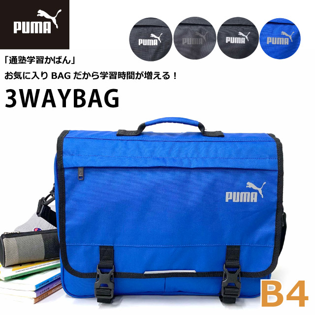 塾バッグ リュック 男の子 PUMA プーマ 3wayリュック j20128 リフレクター付き 塾 バッグ リュック 通塾 ヨコ型リュック 3wayバッグ キッズ 子供 男子 3wayバック a4対応 テキスト収納 スポーツブランド かっこいい 黒 青 おしゃれ 小学生 中学生 ショルダー トート 通学