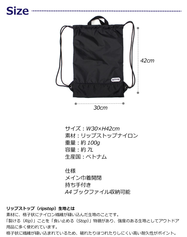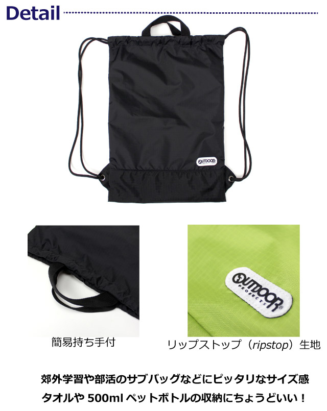 プールバッグ 男の子 ナップサック OUTDOOR PRODUCTS アウトドアプロダクツ ナップサップ 62620 プールバック 中身が見えない 水泳バッグ ナップザック リュック 大きめ 体操着入れ 巾着 体操服入れ 林間学校 サブバッグ 入学 修学旅行 高学年 小学生 男子 女の子 女子