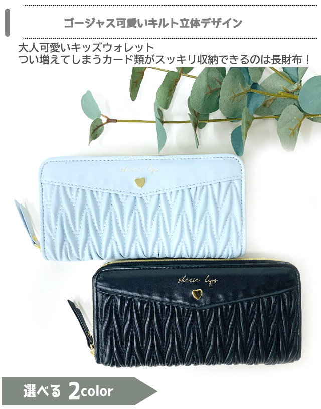 【ラッピング袋無料】かわいい 長財布 高校生 Sherie Lips ラッセルキルト ラウンド長財布 wvu-108 小学生 女の子 キッズ 財布 ラウンドジップ 中学生 さいふ 財布 レディース お 財布 誕生日 クリスマス プレゼント 大人 無地 黒 水色 大人っぽい シンプル 高学年 小6 小5