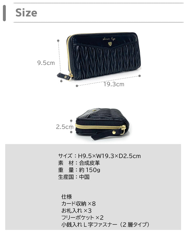 ![]() ![]() ![]() ![]() ![]() ![]() ・Sherie Lips シェリーリップス ラッセルキルト きれいめ大人っぽラウンド長財布。 シンプルデザイン&高級感のある合皮で大人可愛いデザイン。 フロントの小さいハートがポイント 大きく開くから中身が見やすく、カードもたくさん収納できます。小銭入れはファスナー開閉です。 小学生・中学生・高校生の女の子に人気で、お誕生日やクリスマス等のプレゼントにもおすすめです。