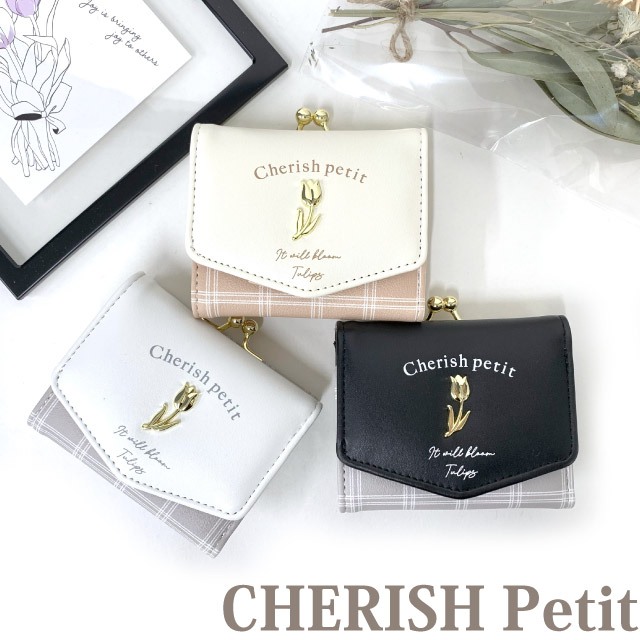 財布 女の子 小学生 CHERISH Petit フラワーチェック ミニ口金財布 wxg-305 キッズ ミニ財布 女の子 がま口財布 がま口 中学生 高校生 修学旅行 人気 三つ折り 小さい財布 かわいい コンパクト 折りたたみ お 財布 さいふ 三つ折り財布 ベージュ 白 黒 チェック 使いやすい