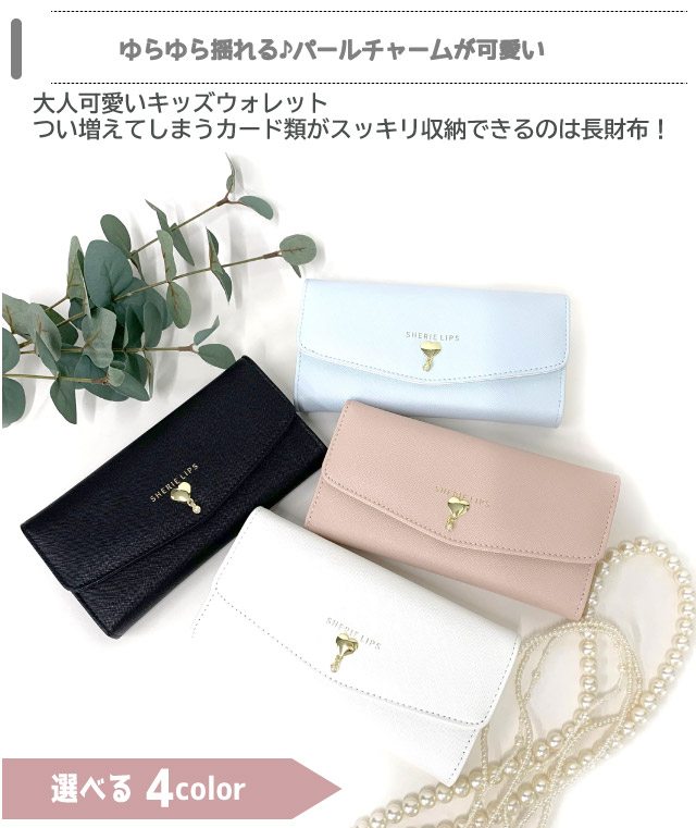 【ラッピング袋無料】財布 レディース 長財布 可愛い Sherie Lips ハート&パール かぶせ長財布 lpq-101 高校生 中学生 さいふ 長サイフ かわいい 大人っぽい キッズ お財布 小学生 女子 大容量 女の子 誕生日プレゼント クリスマスプレゼント 修学旅行 ピンク 水色 黒 白