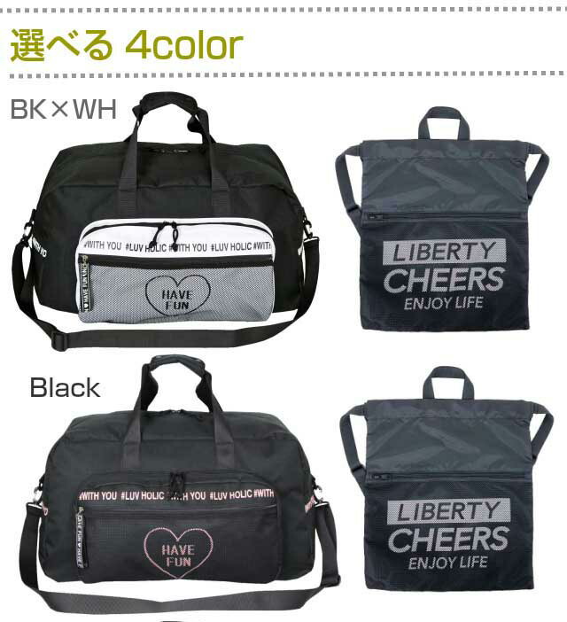 小学生 女の子 ボストンバッグ 修学旅行 プレーンハート ボストンバック 60cm ナップサックセット lph-573-g671467 ナップザック 林間学校 自然学校 宿泊学習 女子 かわいい 3泊 4泊 大容量 おそろい 黒 紫 緑 ブラック パープル グリーン 中学生