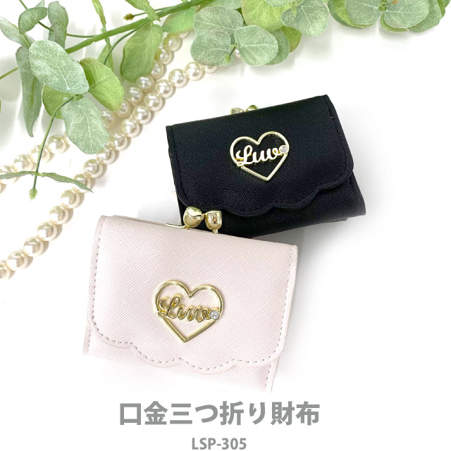 【ラッピング袋無料】小学生 女子 財布 CHERISH Petit スカラップハート ミニ口金財布 lsp-305 キッズ ミニ財布 女の子 がま口財布 がま口 中学生 高校生 修学旅行 人気 三つ折り 小さい財布 かわいい コンパクト お 財布 さいふ 三つ折り財布 レディース 黒 アイボリー