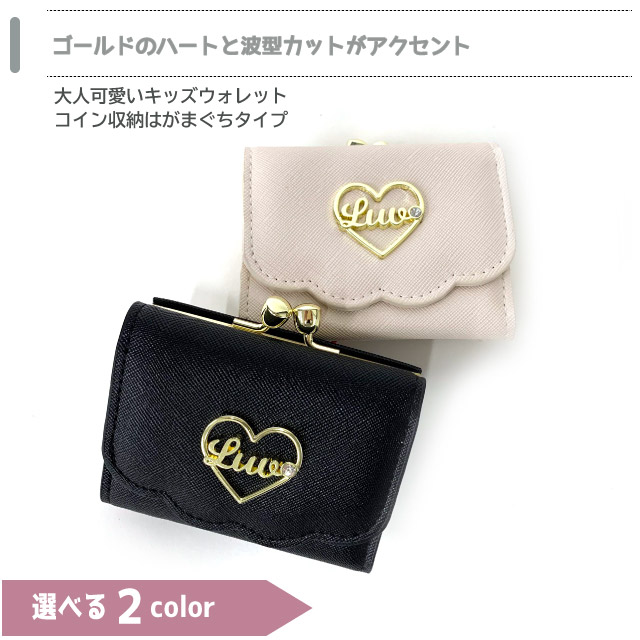 ![]() ![]() ![]() ![]() ![]() ![]() ・CHERISH Petit スカラップハートシリーズ ゴールドのハートと波形カットが大人かわいいキッズ・ジュニア向けのミニ財布。 カード収納も豊富で小銭入れは使いやすい口金タイプ。 小学生・中学生・高校生の女の子に人気で、お誕生日やクリスマス等のプレゼントにもおすすめです。