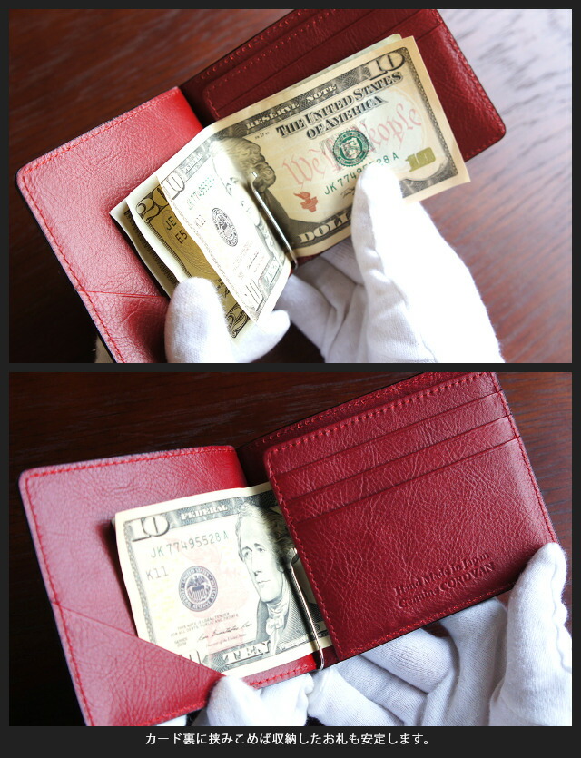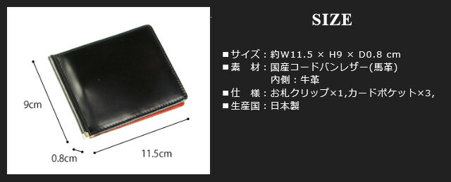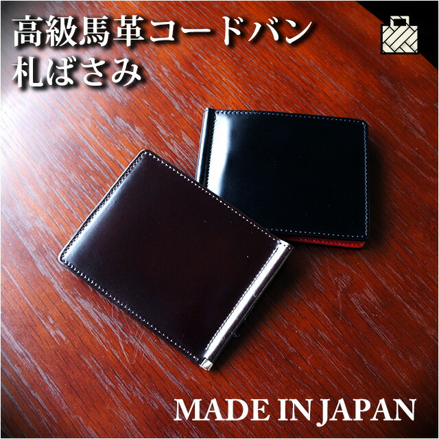 二つ折り財布(メンズ 二つ折り財布(小銭入れなし))日本製 コードバン 札ばさみ【ly1004】マネークリップ 馬革 本革 レザー 高級 小銭入れなし 2つ折り財布 ふたつ折財布 サイフ さいふ 父の日 バレンタインデー お祝い プレゼント