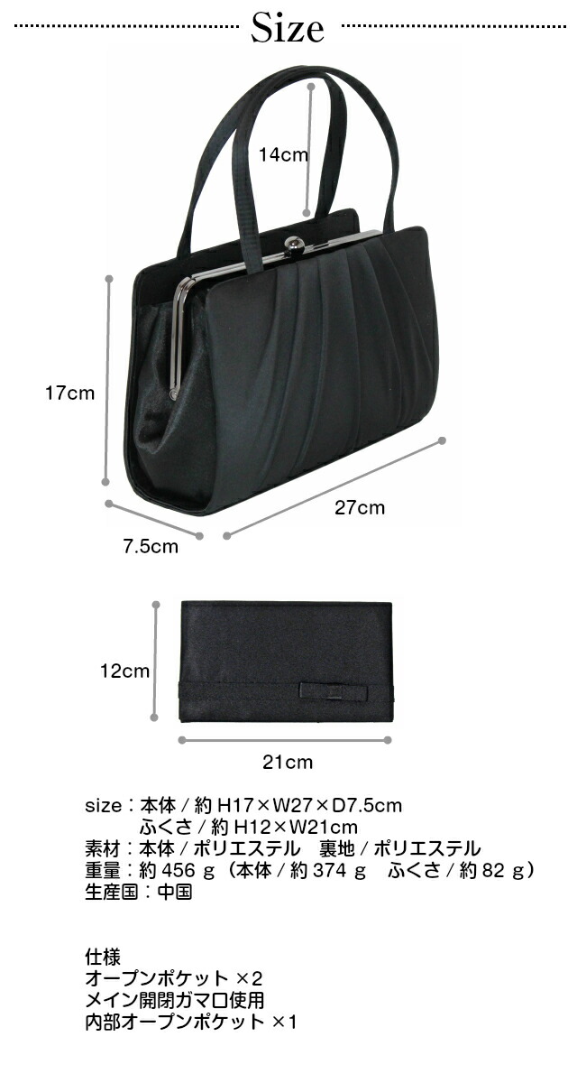 ![]() ![]() ![]() ![]() ![]() ・MODE(モード) 和装・洋装どちらでもお使いいただけるブラックフォーマルバッグ。 口金タイプで大きく開き中身が見やすい、取り出しやすい。 ふくさ付きのセットになっています。 卒業式・入学式・冠婚葬祭・・・さまざまなシーンで使えるデザイン。
