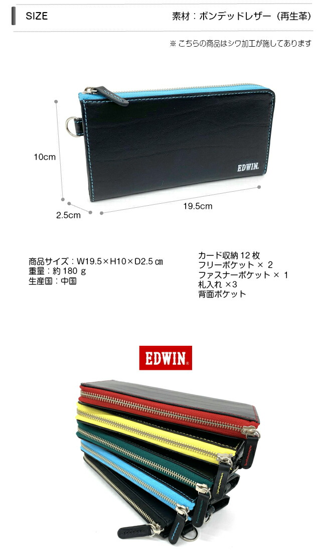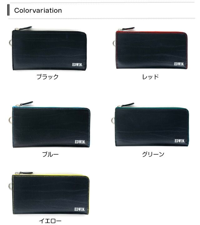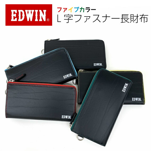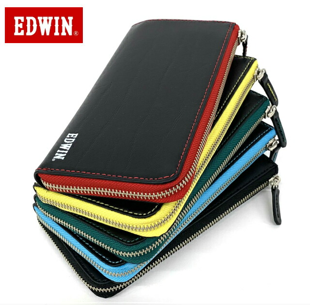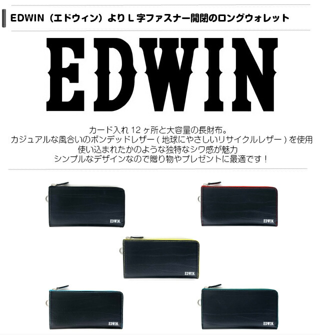 【ラッピング袋無料】長財布 メンズ L字ファスナー EDWIN エドウィン ボンデッドレザー L字ファスナー長財布 0510598 財布 男性 男性用 L字ファスナー型 レザー 再生革 ブラック 黒 イエロー レッド ブルー グリーン 誕生日 父の日 クリスマス プレゼント