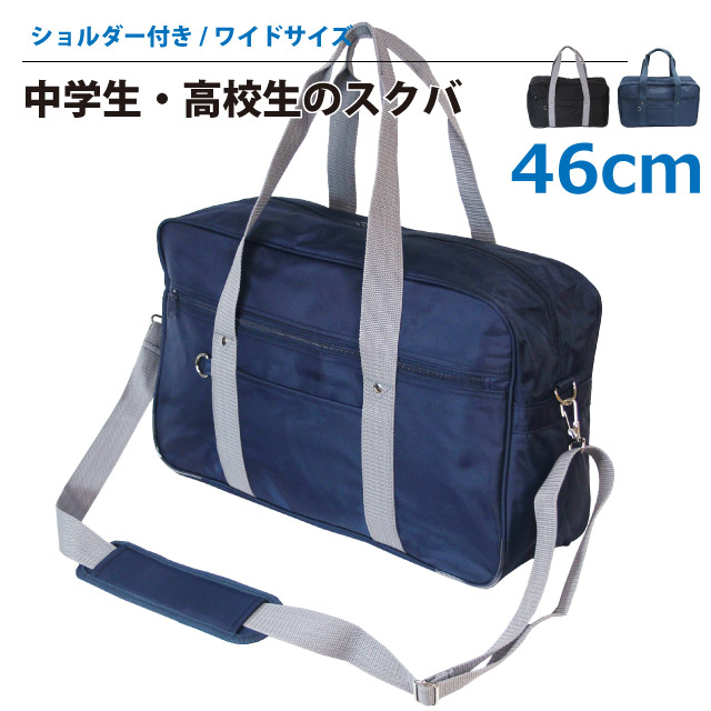 スクールバッグ ショルダー サブバッグ ABYSS OF TIME スクールバック 46cm ワイドタイプ 3308 スクバ 通学バッグ 中学生 高校生 通学ショルダー 大きめ 大容量 男子 通学カバン 斜めがけ ナイロン スクールボストン 入学祝い 高校 中学 新学期 入学準備 紺 黒 塾バッグ