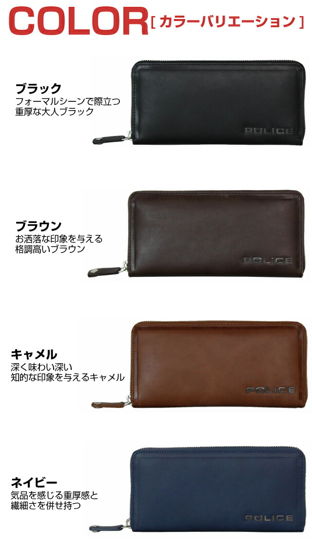 ポリス POLICE EDGE ラウンドファスナー長財布 【pa-58002】長財布 ファスナー 送料無料 メンズ 財布 ブランド 紳士用 男性用 牛革 革 メンズ財布 人気 通販 mens 小銭入れあり プレゼント ギフト クリスマス 父の日 ブラック ネイビー キャメル ブラウン
