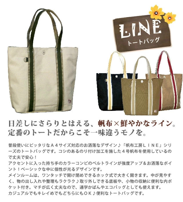 【トートバッグ】帆布工房 LINE トートバッグ[3j45]【はんぷこうぼう ライン】【4号帆布 レディース メンズ トートバッグ ショルダーバッグ A4サイズ 丈夫 男女兼用 エコバッグ キャンバス 通学 カジュアル 人気 大きめ バッグ lady’s】送料無料