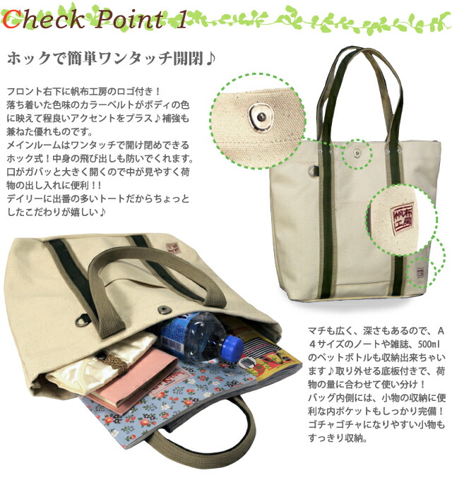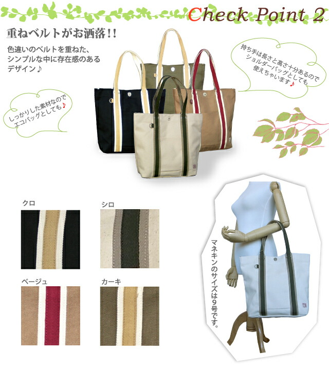 ![]() ![]() ![]() ![]() ![]() ![]() 帆布工房 日差しにさらりとはえる、帆布×鮮やかなライン。 定番のトートだからこそ一味違うモノを。。。 普段使いにピッタリなA4サイズ対応のお洒落なデザイン♪ 「帆布工房 LINE」シリーズのトートバッグです。 コシのあるのり付け加工を施した4号帆布を使用しているので丈夫で安心! アクセントに入った持ち手のカラーコンビのベルトラインが強度アップ&お洒落なポイント!ベーシックな中に個性が光るデザインです。 メインルームはワンタッチで開け閉めできるホック式で大きく開きます。 マチが広く丈夫なので、通学カバンやエコバッグとしても使えます。カジュアルでもキレイめでもどちらもOK♪便利なトートバッグです。