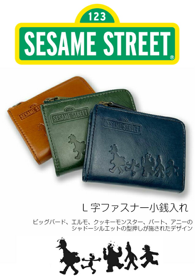 セサミストリート 財布 SESAMESTREET L字ファスナー 小銭入れ sek-11 メンズ レディース 財布 大人 革 サイフ エルモ クッキーモンスター コインケース 男性 レザー セサミ グッズ かわいい 高校 中学 見やすい 緑 茶 紺 おしゃれ グリーン プレゼント