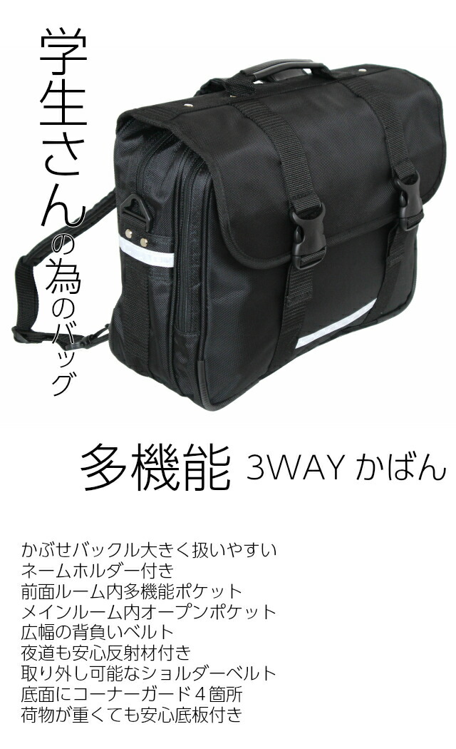 塾 カバン 男の子 多機能 3wayバッグ リフレクター付き sl-10 3way バッグ リュック スクールバッグ ショルダーバッグ 女の子 女子 男子 レッスンバッグ 塾 バッグ 塾用 横型 小学生 通塾 中学生 習い事バッグ おけいこバッグ 黒 通学バッグ ブラック 塾用 シンプル