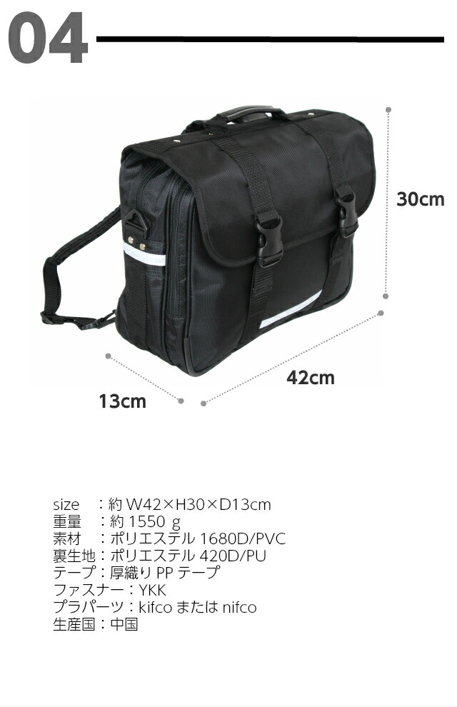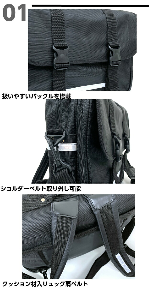 ![]() ![]() ![]() ![]() ![]() ![]() ・ 多機能3wayバッグ 通学や通塾にぴったりのスクールバッグ。 リフレクター付きで夜道も安心です。 A4サイズ収納対応サイズ。 リュック・ショルダー・手提げバッグとして3通りに使え、通学・通塾・レッスン等に人気です。