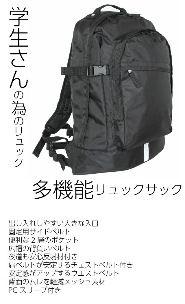 通学リュック 大容量 男子 多機能 リュックサック リフレクター付き 35L sl-07n 送料無料 メンズ レディース 女子 通勤 A4 黒 ブラック 男女兼用 中学生 高校生 部活 スポーツ 人気 ディ デイ バッグ 大きめ 無地 シンプル 入学祝い 合格祝い スクールバッグ リュック PC収納