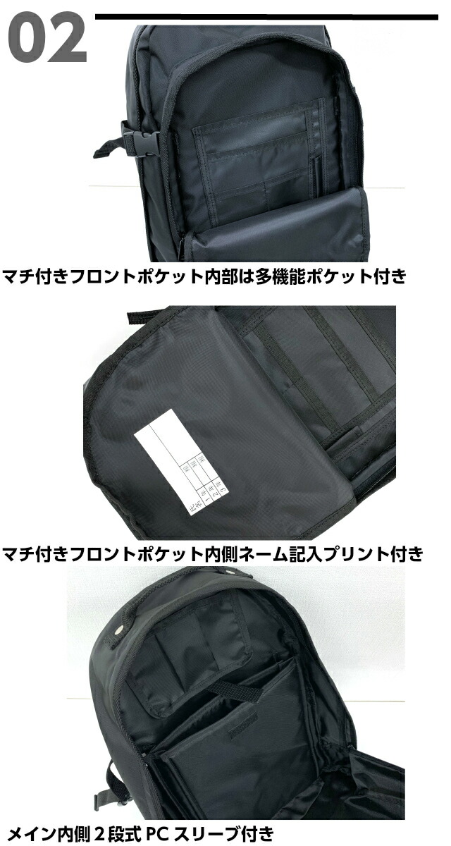 ■イメージ・その他:多機能 大容量 大きめ 2層式 シンプル 無地 丈夫 反射材付き 黒 ブラック リフレクター ネームホルダー