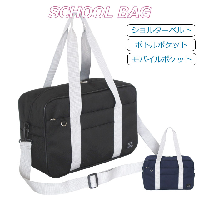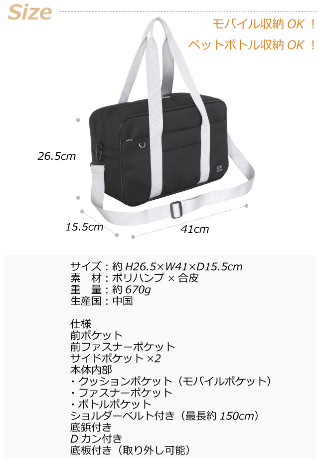 ■イメージ・その他:おしゃれ かわいい お洒落 おすすめ 人気 通販 可愛い ガール 黒色 ブラック ネイビー 紺色 ブランド ペットボトルホルダー a4 サブバッグ スクールボストン ショルダー付き モバイルポケット付き a4ファイル対応