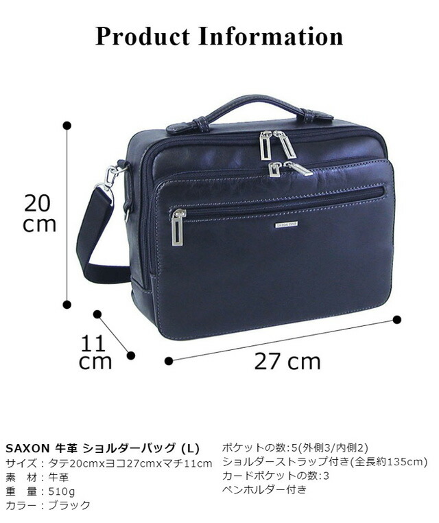 本革 ショルダーバッグ メンズ SAXON サクソン 牛革 横型 ショルダーバッグ L 5047 斜めがけ 消臭 メンズバッグ 黒 ブラック 人気 おしゃれ B5 レザー 本革 通勤 紳士 男性用 おじいちゃん お父さん 祖父 バレンタイン クリスマス 誕生日 父の日 プレゼント ギフト 敬老の日