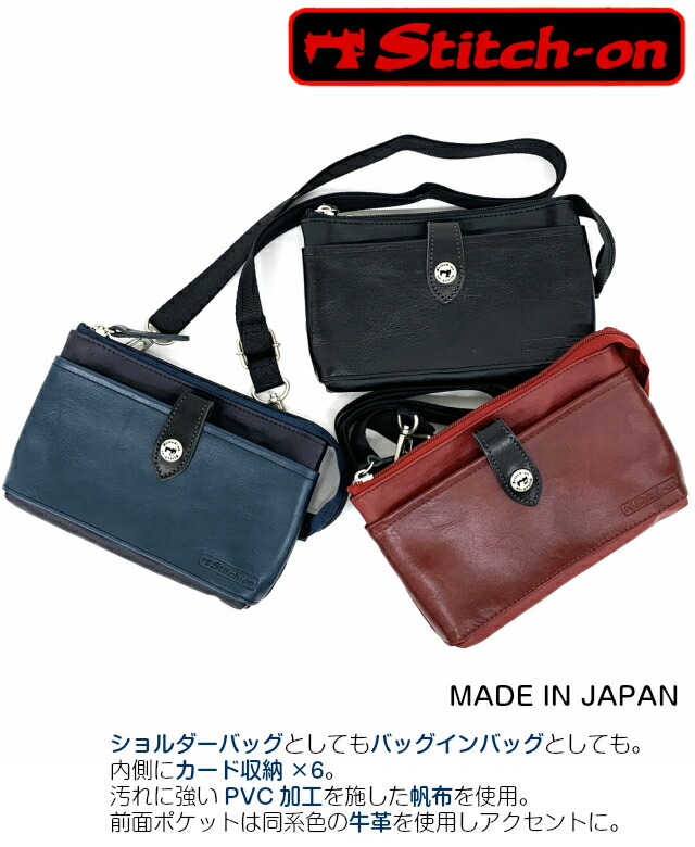 【ラッピング袋無料】Stitch-on コンパクトショルダー Sサイズ 52028 メンズ ショルダーバッグ 小さめ お財布ショルダー かっこいい 黒 紺 赤 コンパクト バッグインバッグ ポーチ アクセサリーポーチ 男性 父 祖父 カバン メンズバッグ ショルダー 斜めがけバッグ 旅行