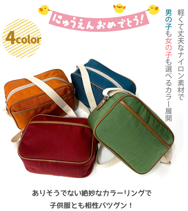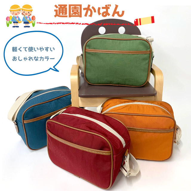 通園バッグ ショルダー 男の子 女の子【日本製 豊岡製】幼稚園かばん 60-1033 通園バック 幼稚園バッグ 保育園 バック かばん 幼稚園 ショルダーバッグ 斜め掛け かわいい 無地 シンプル 定番 人気 キッズ 子供 通園バッグ グリーン レッド オレンジ ブルー ナイロン 軽い