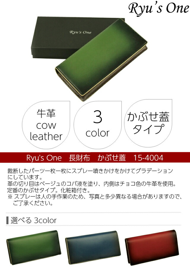 【送料無料 】【ラッピング袋無料】Ryu’s One(リューズワン)GGシリーズ 長財布【15-4004】メンズ 財布 ブランド かぶせ長財布 紳士用 男性用 牛革 メンズ財布 人気 通販 小銭入れあり ネイビー レッド グリーン 緑の財布 プレゼント ギフト クリスマス 父の日