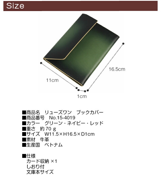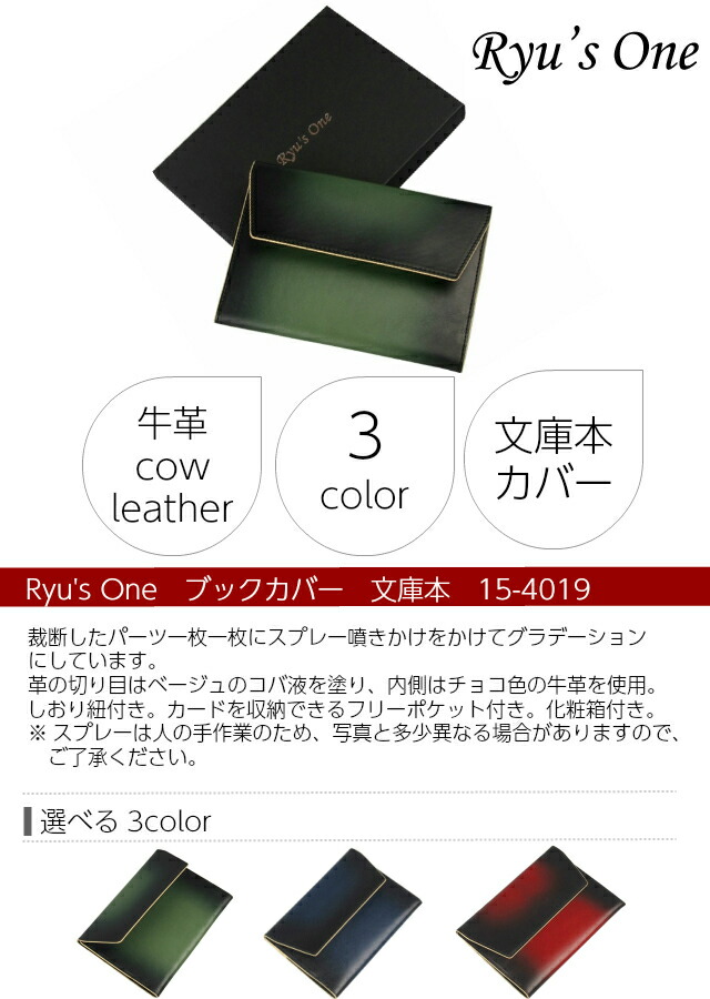 【送料無料】【ラッピング袋無料】Ryu's One(リューズワン)GGシリーズ ブックカバー 文庫本サイズ【15-4019】文庫 革 単行本 レザー 文庫サイズ ケース 本カバー 文庫カバー おしゃれ おすすめ a6 ネイビー レッド グリーンプレゼント ギフト クリスマス 父の日