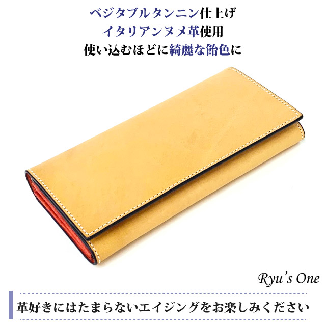 【ラッピング袋無料】Ryus One リューズワン INシリーズ ヌメ革 長札入れ 15-4064 メンズ 財布 ブランド かぶせ長財布 紳士用 男性用 牛革 メンズ財布 人気 通販 小銭入れあり ネイビー 紺 レッド 赤 イエロー 黄色 金運 プレゼント ギフト クリスマス 父の日 レディース財布