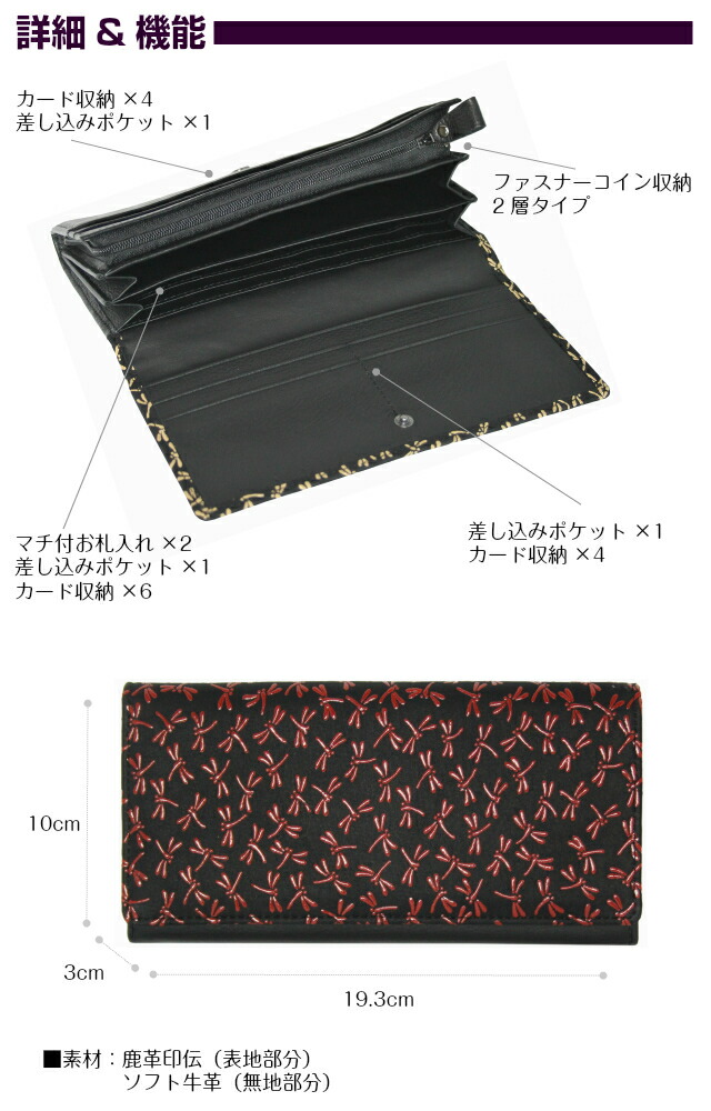 印伝 財布 レディース/印伝(いんでん)長財布[16-07]女性 女物 鹿革 漆塗り模様 プレゼント贈り物 母の日 敬老の日 年配向 母 お母さん 祖母 おばあちゃん ギフト 誕生日 バッグ・小物・ブランド雑貨 財布・ケース レディース財布 トンボ 小桜 ボタン 折りたたみ財布