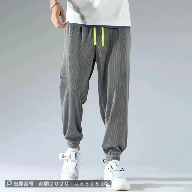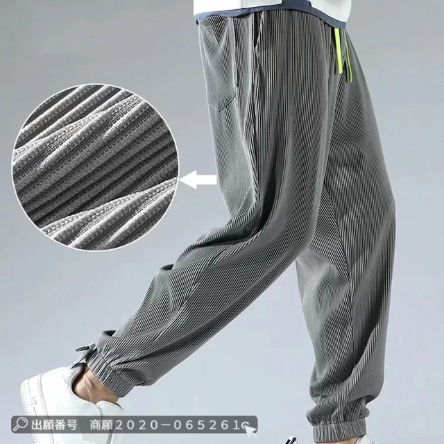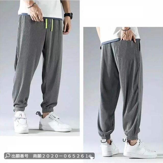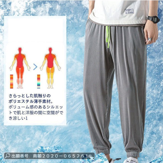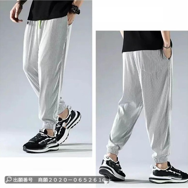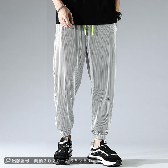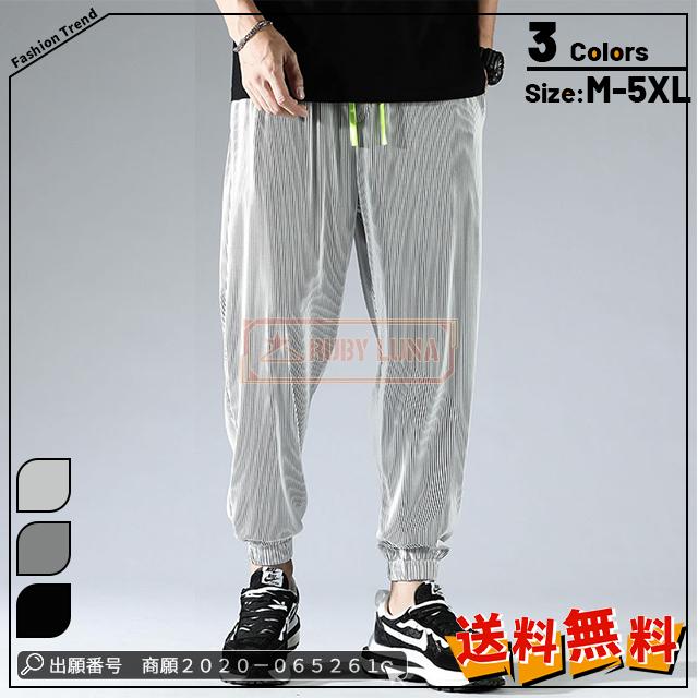 赤字覚悟 送料無料 アイスシルク ロングパンツ ズボン カジュアル ゆったり 薄手 接触冷感 ストレッチ 無地 大きいサイズ クロップド ワイドパンツ スウェットパンツ 男女兼用 ストライプ