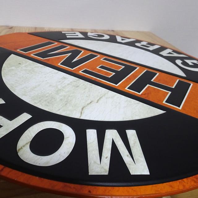 Moparのロゴがデザインされたおしゃれな丸形のブリキ看板です。