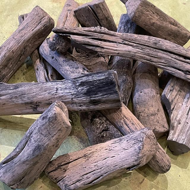 良質な備長炭 ウバメガシの木炭です。和歌山県が世界に誇る硬質の炭、それが紀州備長炭です。その歴史は、弘法大師が広めた熊野炭が始まりといわれています。現在の備長炭の形を作ったのが、江戸時代の田辺の炭問屋「備中屋長左衛門」。彼の名前から備長炭と呼ばれます。燃料として火力が強く火持ちが良い、温度調節も団扇一つで簡単にできる等重宝されています。
