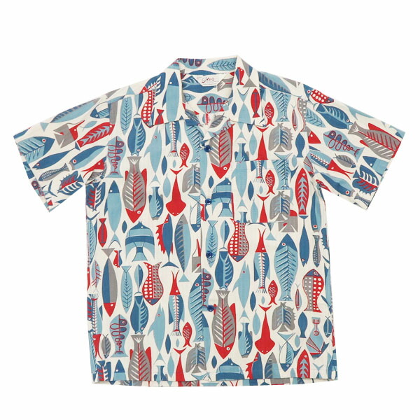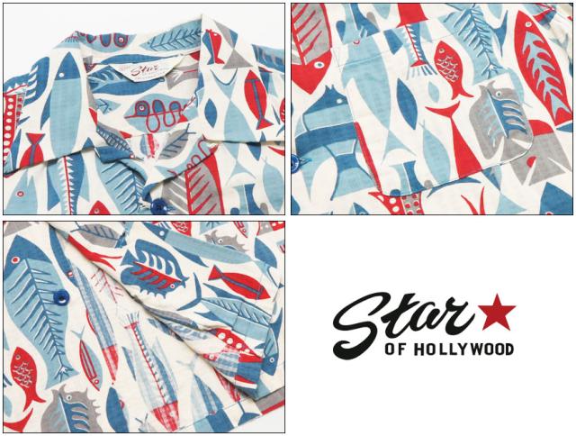 STAR OF HOLLYWOOD スターオブハリウッド 半袖 ドビーコットン オープンカラー シャツ FISH アロハシャツ ハワイアンシャツ SH38882