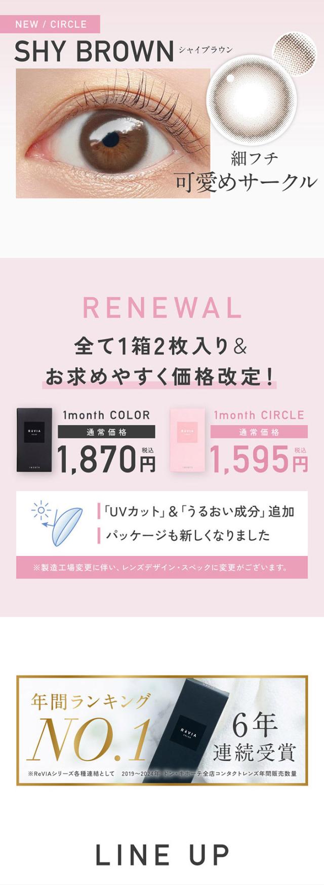 カラコン 1ヶ月 度あり レヴィアマンスリー ReVIA circle サークル KIM CHAEWON 1箱2枚入り 14.1mm BC8.6 ブラウン ナチュラル系 裸眼風 色素薄い系 大人可愛い 小さめ 自然 透け感 透明感 ドンキ キャンマジ キャンディーマジック 高度数 1month ワンマンス