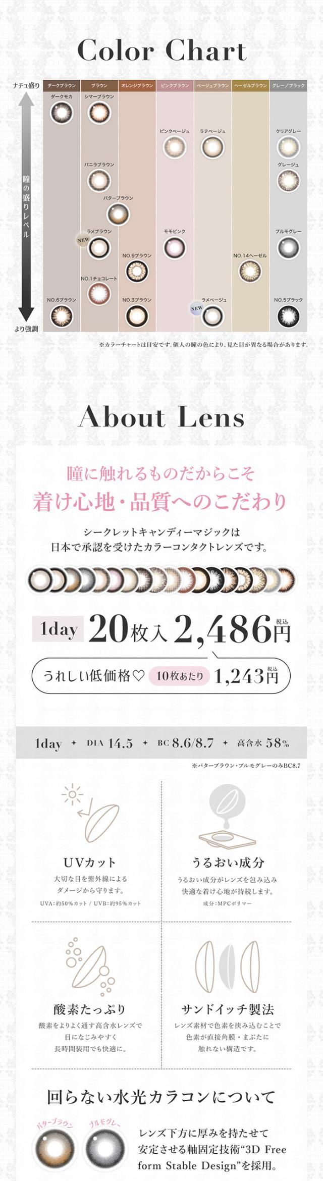 カラコン ワンデー 度あり 度なし シークレット キャンディーマジック secret candymagic キャンマジ 板野友美 ともちん DIA14.5mm BC8.6 BC8.7 1箱20枚入り 透明感 ナチュラル ハーフ ブラウン グレー ブラック 高度数 ハイパワー 3番 5番