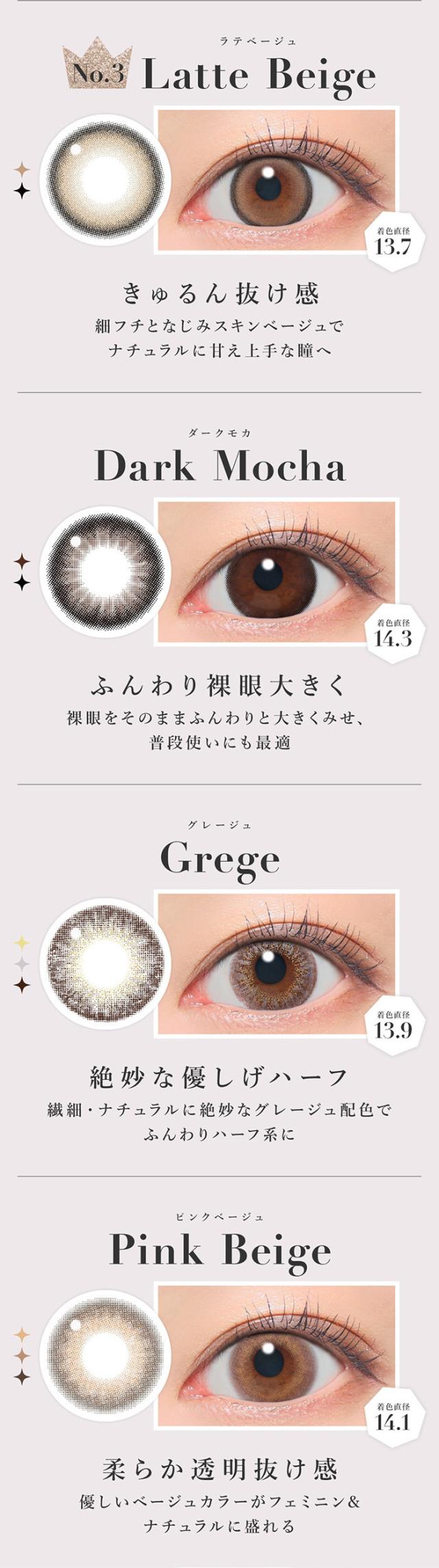 ベースカーブ:BC8.6mm(バターブラウン、プルモグレーのみBC8.7mm)