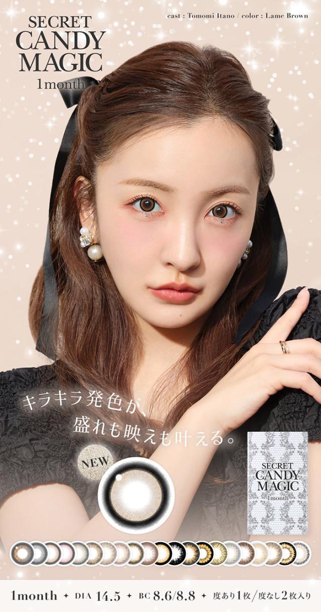 カラコン 1ヶ月 度あり 板野友美 ともちん シークレット キャンディーマジック secret candymagic キャンマジ マンスリー 1箱1枚入り DIA14.5mm BC8.8 BC8.6 ブラウン ブラック グレー ナチュラル系 ハーフ 高度数 ハイパワー 3番 5番