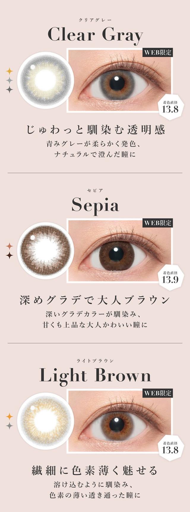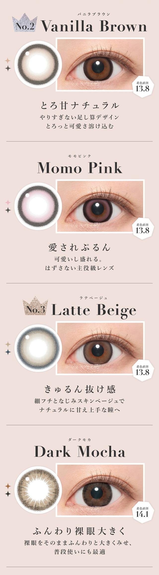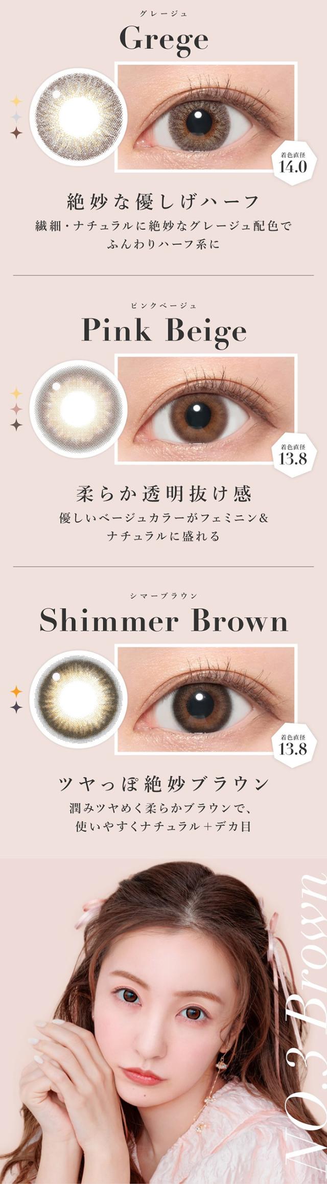 色直径:【13.8mm】モモピンク、バニラブラウン、ラテベージュ、ピンクベージュ、クリアグレー、シマーブラウン、ライトブラウン