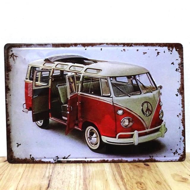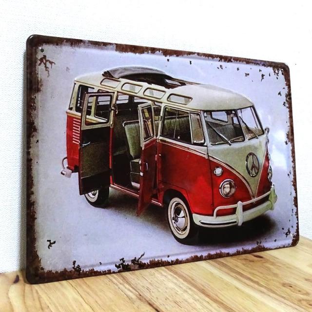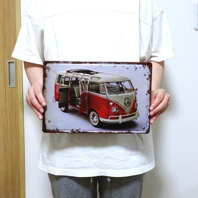 ブリキ看板 車 RED BUS バス アンティーク ガレージ かわいい プレート 壁飾り アメリカン 雑貨 インテリア おしゃれ